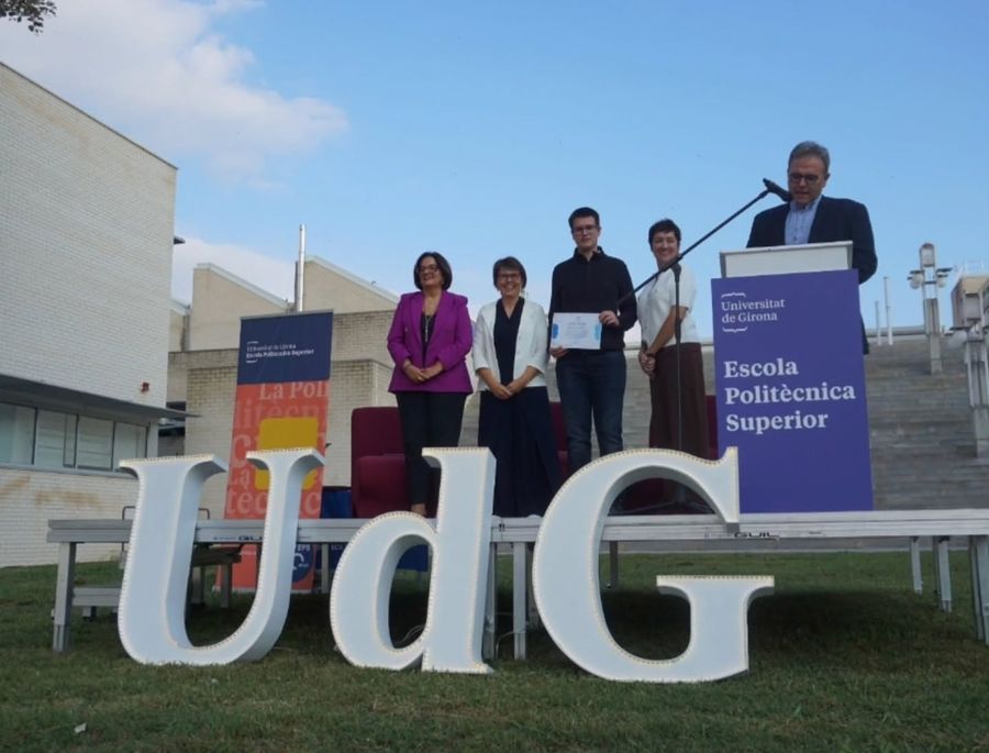 La directora de l’Escola Politècnica Superior, Maria Àngels Pèlach, va entregar els premis que atorga el Patronat i que està dotat amb 1.000 euros per a l’estudiant. L’acte va tenir lloc al pati exterior de la facultat Politècnica de la UdG.