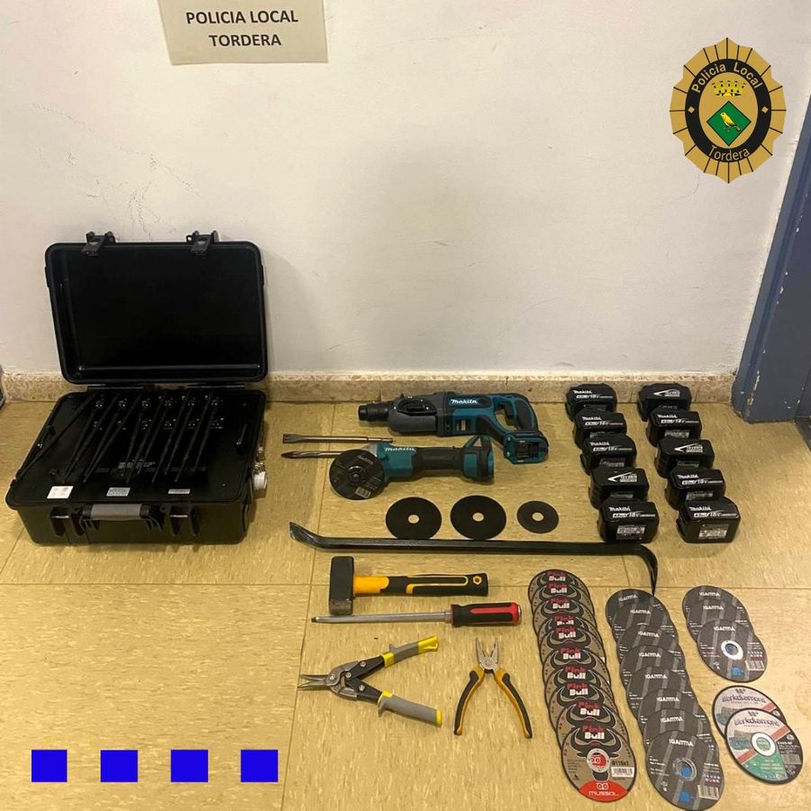 Durant la intervenció, els agents van aturar el vehicle i, en realitzar l’escorcoll corresponent, van localitzar a l’interior un veritable kit per a robatoris amb força. Entre el material intervingut destaca una radial, un martell percutor, diverses bateries i discos, així com eines manuals. L’element més significatiu de la troballa va ser un inhibidor de freqüències, un dispositiu utilitzat habitualment per a la desactivació de sistemes d’alarma.