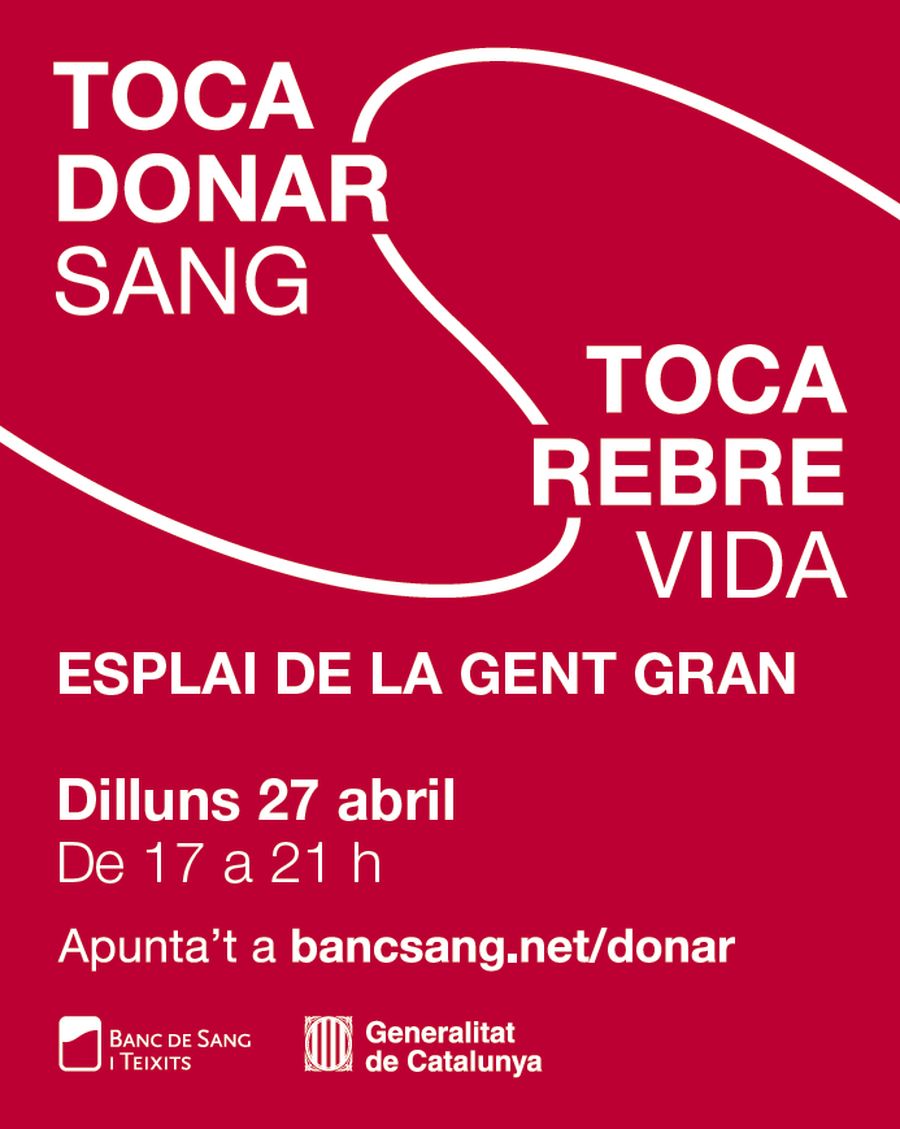 Avui dilluns 27 d’abril es durà a terme a Tordera una nova campanya de donació de sang, sota el lema ‘Toca donar sang . Toca rebre vida!’.